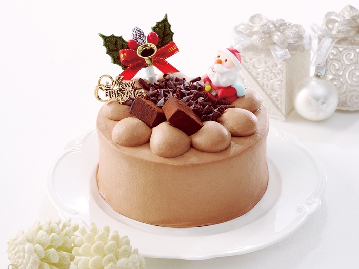 チョコレートケーキの定番・ガトーショコラを、クリスマスにふさわしい豪華なホールケーキに落とし込んだ一品です。