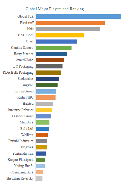 YHResearch Top Players Research Centerによると、ジャンボバッグの世界の主要メーカーはGlobal-Pak、Flexi-tuff、Isbir、BAG Corp、Greifなどである。2024年、世界の上位5社の売上高シェアは約12.0%であった。