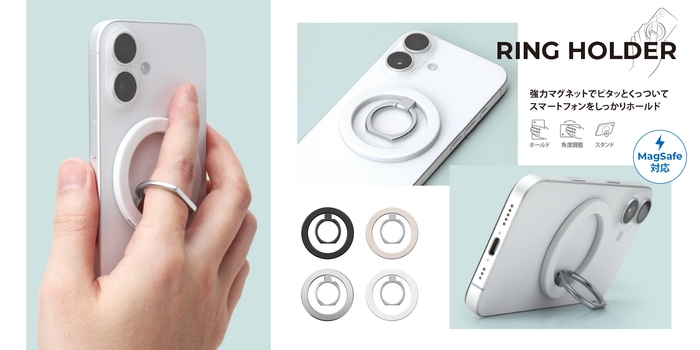 強力マグネットでピタッとくっつくMagSafe対応スマホリングホルダーを株式会社PGAが2月28日より新発売
