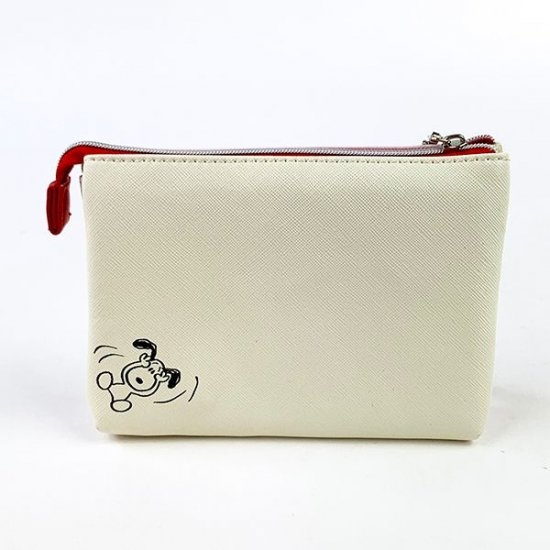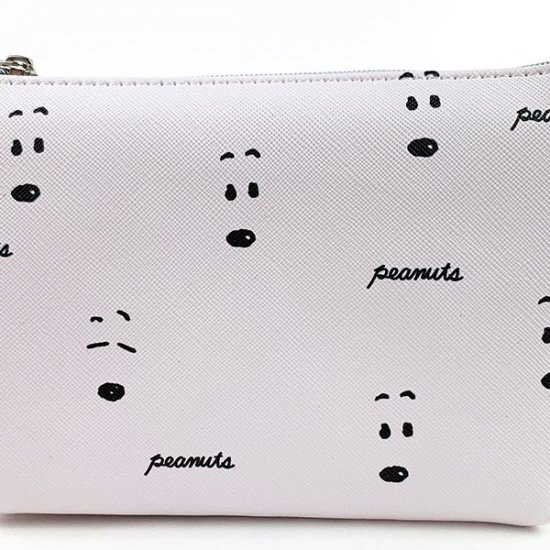 人気のスヌーピーフェイスデザインが、総柄になって登場です。アイテムの全面にフェイスが並んでいるので、とってもキュート。ポーチは人気の3ポケットなので、使い勝手も抜群です。