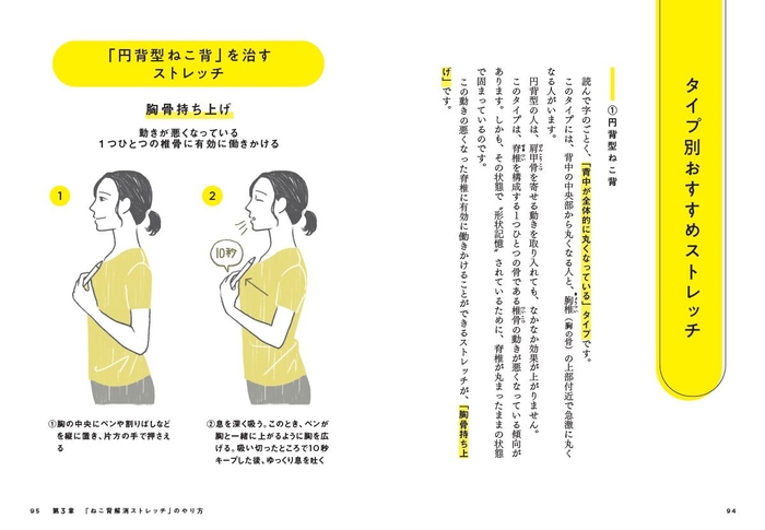 なかでも注目すべきは第3章で紹介する「ねこ背解消ストレッチ」。