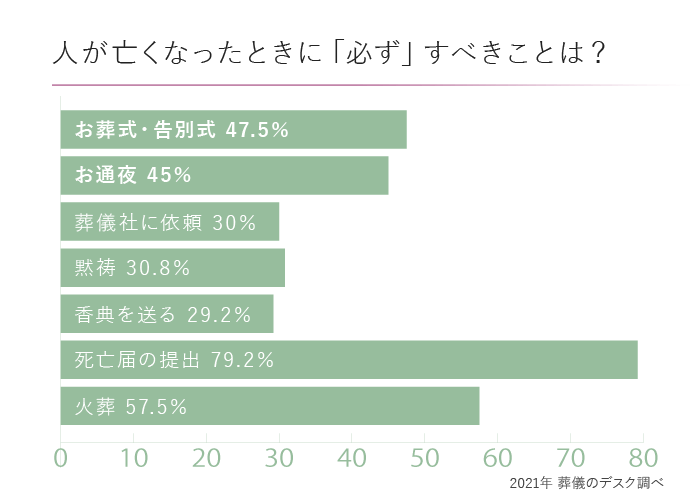 「人が死んだら”必ず”お葬式とお通夜をしなければいけない」と半数が回答