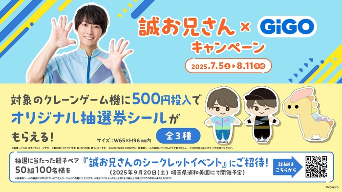 株式会社GENDA GiGO Entertainment(本社:東京都港区 代表取締役社長:二宮 一浩 以下、「当社」)は、2025年7月5日(金)よりGiGOグループのお店におきまして、第12代体操のお兄さん『誠お兄さん』こと、福尾誠さんとのコラボレーションキャンペーンを開催いたします。