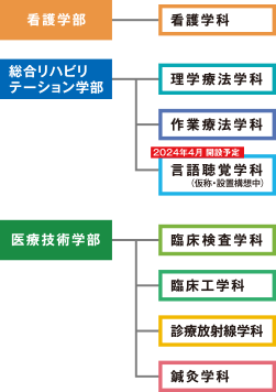 ■医療技術学部:臨床検査学科、臨床工学科、診療放射線学科、鍼灸学科