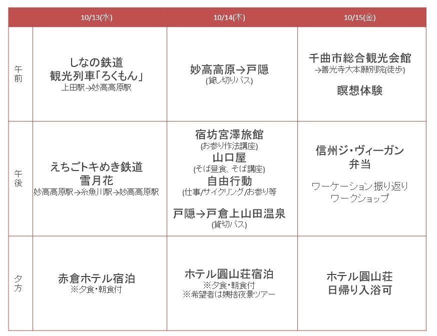 ・仕事の時間を確保しながら、長野と新潟の秋のベストシーズンを全身で体感
