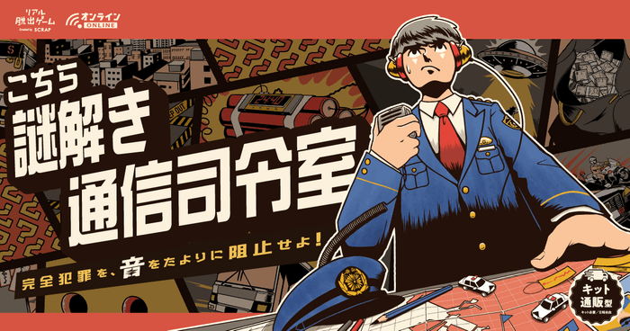 『こちら謎解き通信司令室』ではプレイヤーは通信司令室の司令官となり、警察無線が聞ける通信システムを駆使して、各局へ指示を出すことで、事件を解決に導き市民の平和を守ります。オンラインのWEBシステムを用いて警察無線を聞くだけでなく、付属のキットによるアナログならではの謎解き体験などリアルな店舗で味わっていた体験が自宅でも楽しめる、リアルとオンラインが融合したハイブリットな作品です。