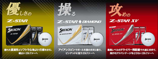 ◆ DIAMOND(ダイヤモンド)」、そしてドライバーで最高レベルの飛距離性能を誇る攻めのNEW「スリクソン Z-STAR XV」という特性の異なる3モデルをラインアップし、ボール選びにこだわるゴルファーのニーズに応えます。