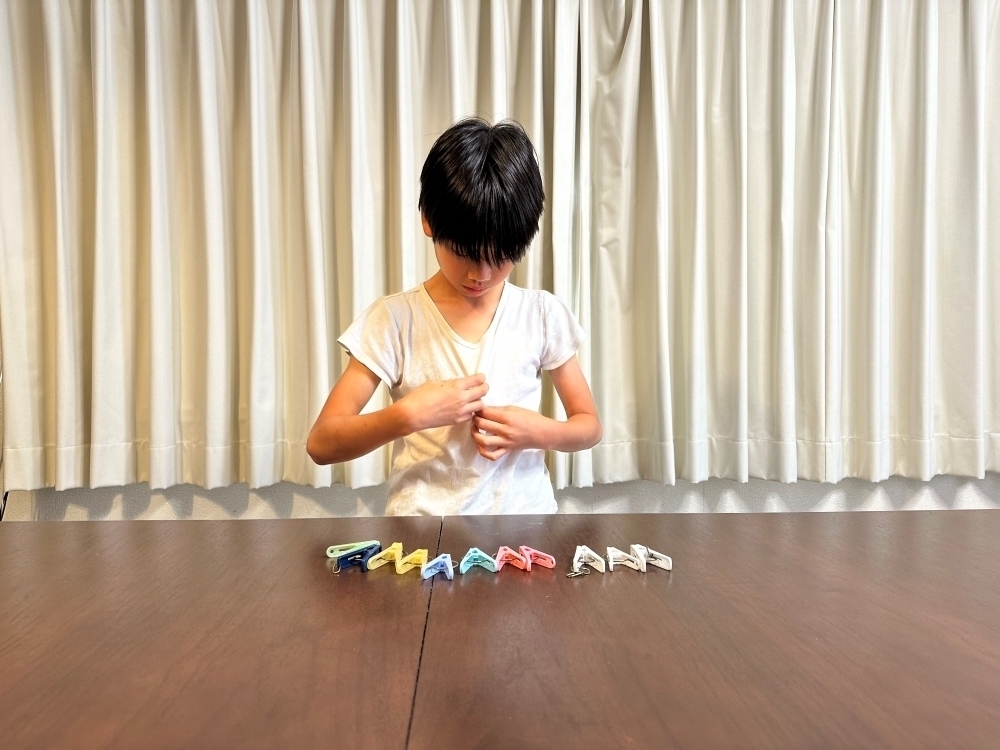 (3)30秒間でせんたくばさみをTシャツにつけた最多数 ※めざす数:40個以上
