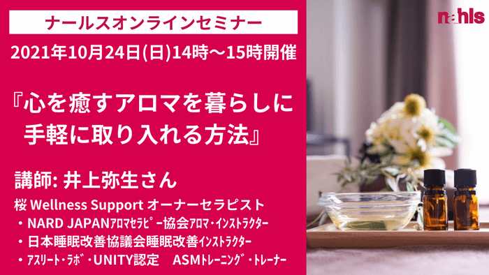 エイジングケア化粧品のナールスが美容オンラインセミナー【 心を癒すアロマを暮らしに手軽に取り入れる方法】を開催