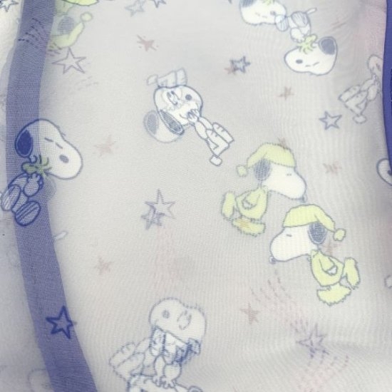 ほかにもこんなデザインが、パープルのオーガンジーも良いですね。パープルカラーとオーロラカラーが映える♡こちらはグッドナイト柄、お休み前のパジャマを着たスヌーピーが歩いています。ところどころに流れ星も流れているんですよ♪
