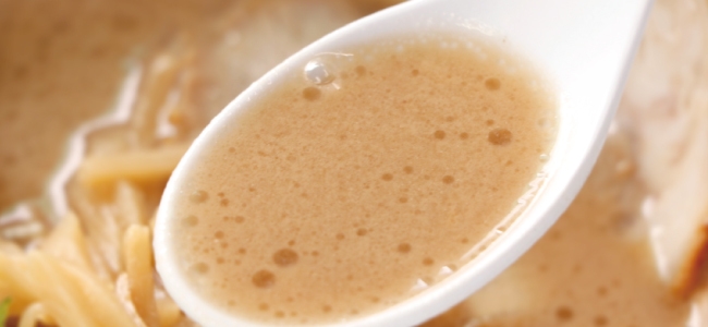 「魁龍」の濃厚スープのもうひとつの秘密は、創業以来注ぎ足し続けてきた呼び戻し方式。漬物の「糠床」の原理と同じように、完成したスープをベースに、豚頭と水を加え、新しいスープの仕込みを行います。こうすることで、熟成されたスープと若いスープが絶妙なバランスを醸し出し、こってりと濃厚ながらも豚骨本来の旨みが生きた、マイルドな口当たりのトンコツスープが出来上がります。