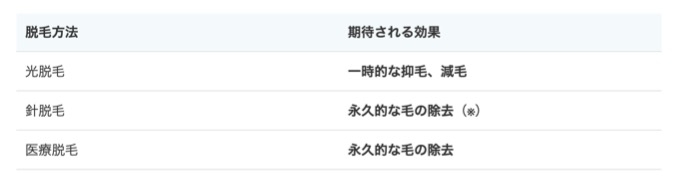 以下に、脱毛方法ごとの効果の違いをまとめました。