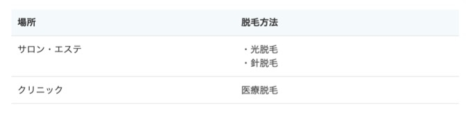ここでは、サロンやクリニックでの脱毛方法についてご紹介します。同じ「脱毛」といってもどちらで受けるかによってその方法は大きく異なるため、まずはそれぞれの特徴を押さえておきましょう。