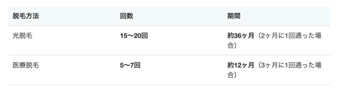 そのため、「足脱毛を完了するまでに○回が必要」と言い切れないのが現状です(以下に、足脱毛の回数の目安をまとめました。個人差があるため、参考程度にご利用ください)
