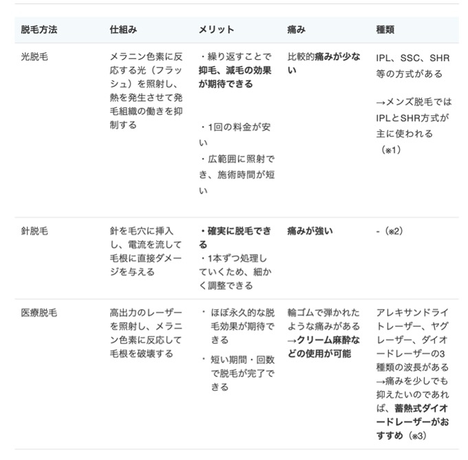 ※2 針脱毛は近年、サロン・クリニックを問わず取り扱いが少なくなっています(本記事で紹介するサロン・クリニックのうち、針脱毛を扱っているのはメンズTBCのみです)。