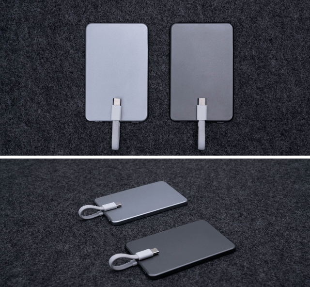 スーツの内ポケットに詰める薄型設計で、会議前の充電もスムーズに。