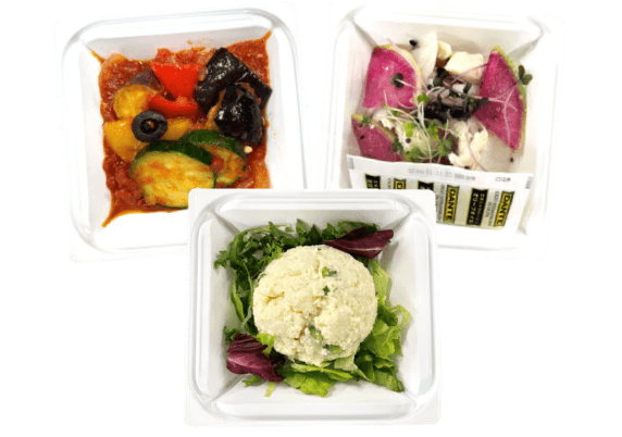 物販エリアの惣菜コーナーではお弁当やおにぎり、サラダなどを展開。オーガニックトマトと夏野菜を使用した酸味が効いた商品や紅芯大根のマリネ、オーガニックフムスを使用したポテトサラダなど3つの新商品を販売します。