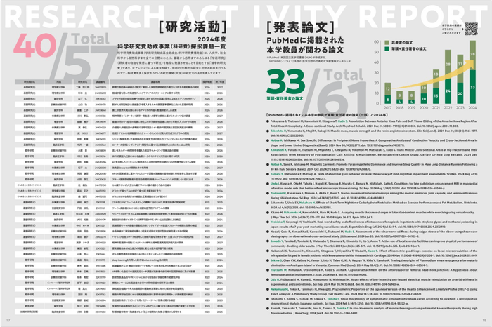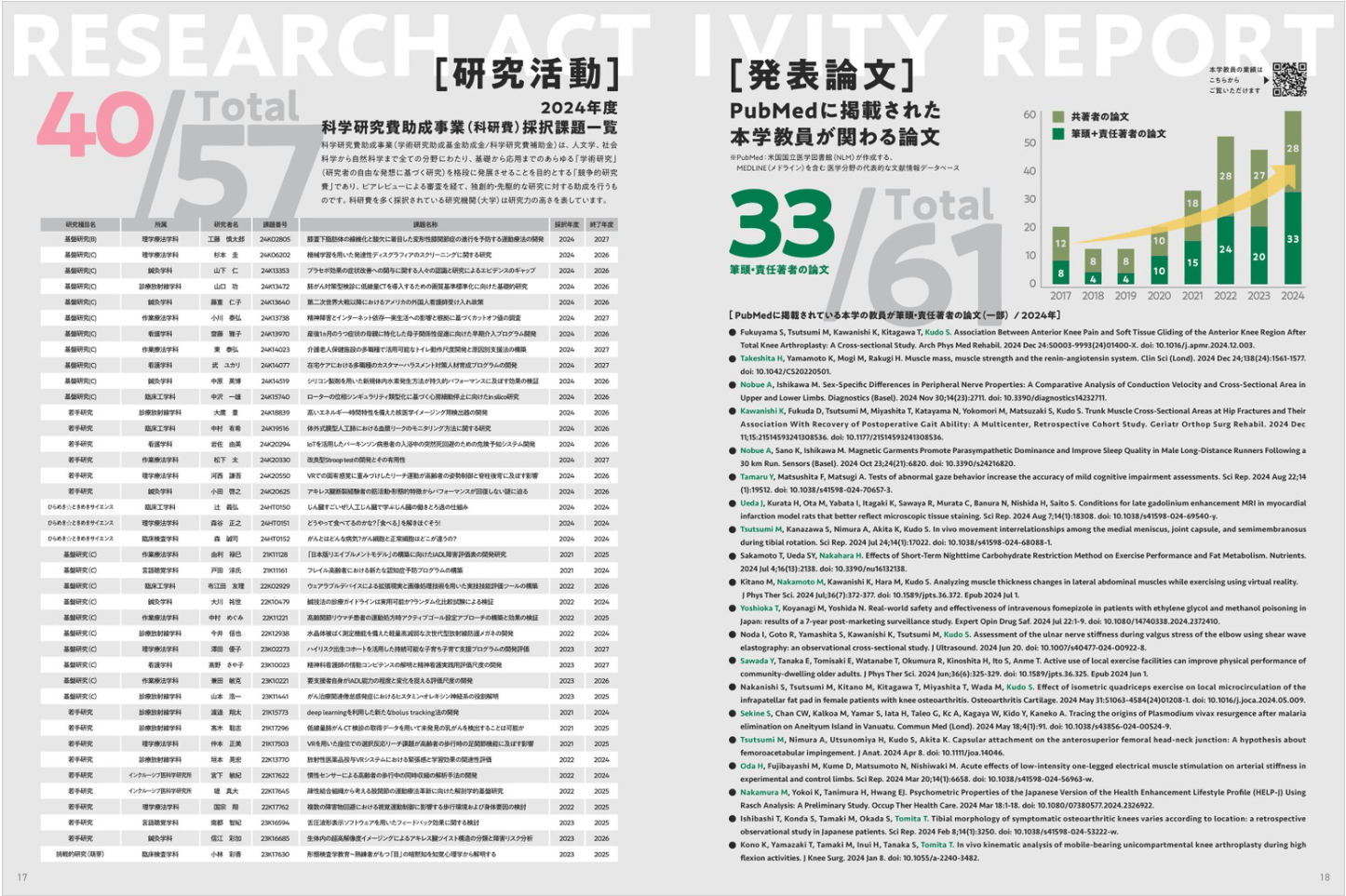 本学は、2024年度科学研究費助成事業(科研費)採択課題数57題、2024年にPubMedに掲載された本学教員が関わる論文61本のうち筆頭・責任著者の論文が33本と、教育力だけではなく研究力の高さも魅力の一つ。また、言語聴覚学科の南都智紀准教授と臨床検査学科の小林彩香准教授のこれまでとこれからの研究活動に注目し、教員のキャラクターや雰囲気もお分かりいただけるような誌面に仕上げました。研究内容や教員の研究に込めた「想い」を是非ご一読ください。