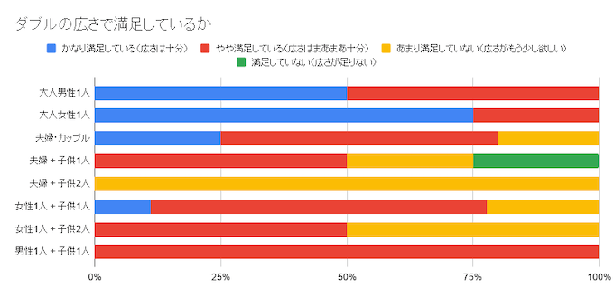 次にダブルサイズの広さにどれくらい満足しているかの調査は以下の結果となりました。