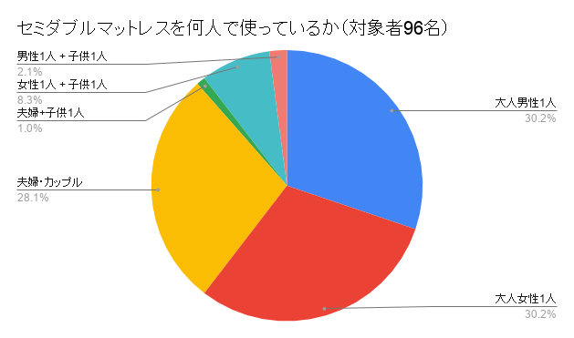 「セミダブルサイズのマットレスを何人で使っているか」を調査したところ、