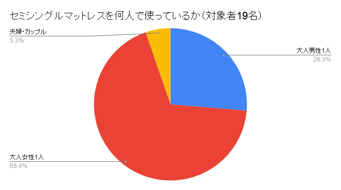 「セミシングルサイズのマットレスを何人で使っているか」を調査したところ、
