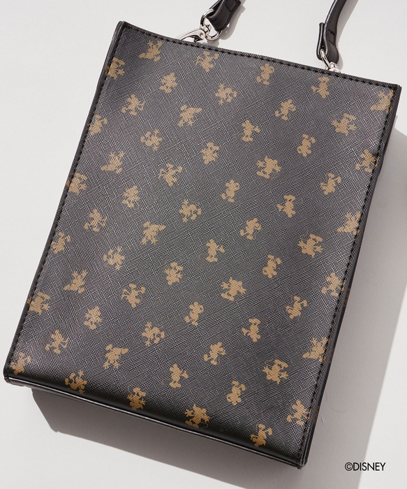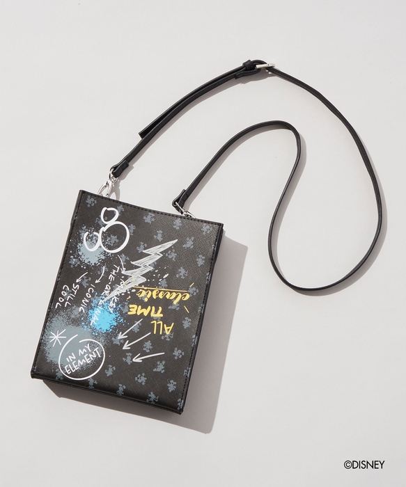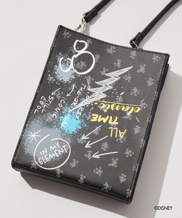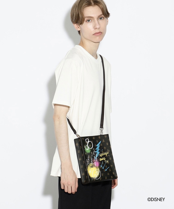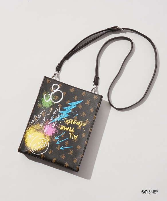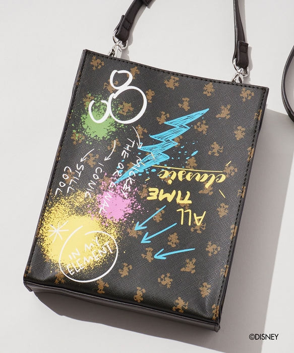 「ミッキーマウス」のシルエットが配置されたシックなモノグラムデザインをベースに、モノグラムの上から落書きした様な遊び心のあるペイントデザインも加えたショルダーバッグです。