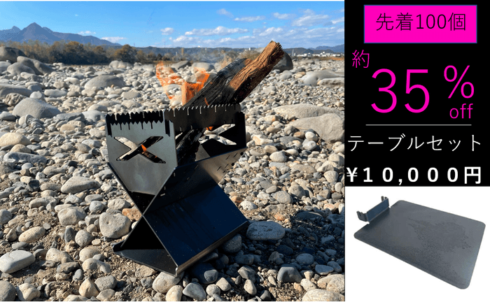 「焚き火・鉄板焼き・網焼き・串焼き」の4つを楽しみたい、欲張りな人に使ってもらう為に開発しました。
