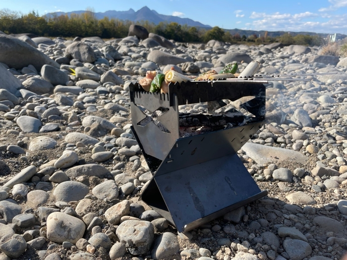 串焼きが楽しくなる焚き火台『マルチトランスキャンプフャイヤーX』