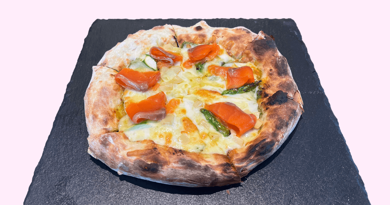 蕗の薹のほろ苦い香りが春の訪れを感じさせる一枚。信州サーモンの旨みとアスパラの食感が重なる、旬を味わう信州野菜ピッツァです。