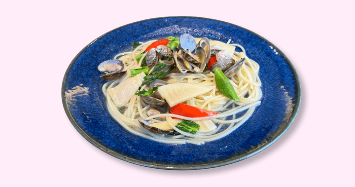 春の息吹を感じる彩り豊かな一皿。筍の食感とパプリカ、アスパラの爽やかさが浅利の旨みと絡み合う、春香る信州ボンゴレパスタをお楽しみください。