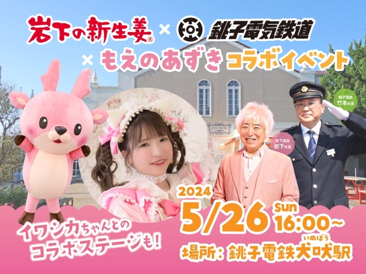 2024年5月26日(日)16時から、銚子電鉄犬吠駅においてオープニングセレモニー『岩下の新生姜×銚子電鉄×もえのあずきコラボイベント』を開催します。