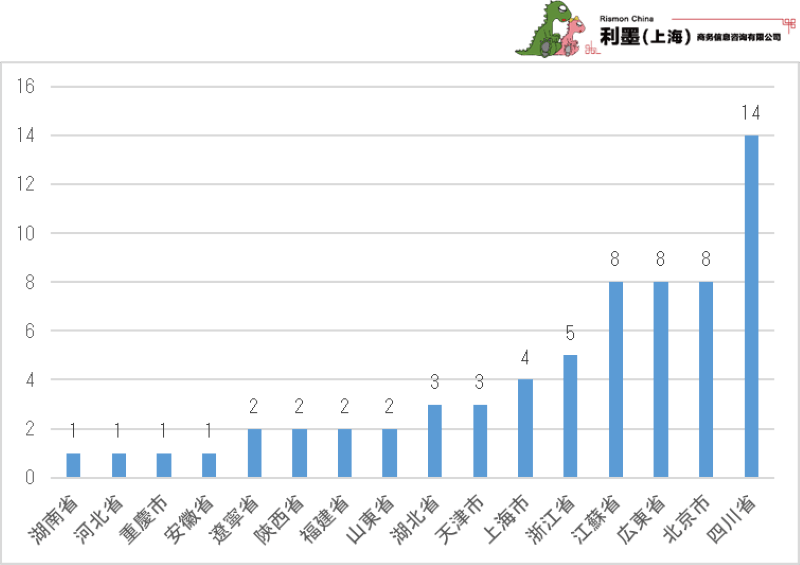 新設企業は「四川省」「広東省」「江蘇省」に集中
