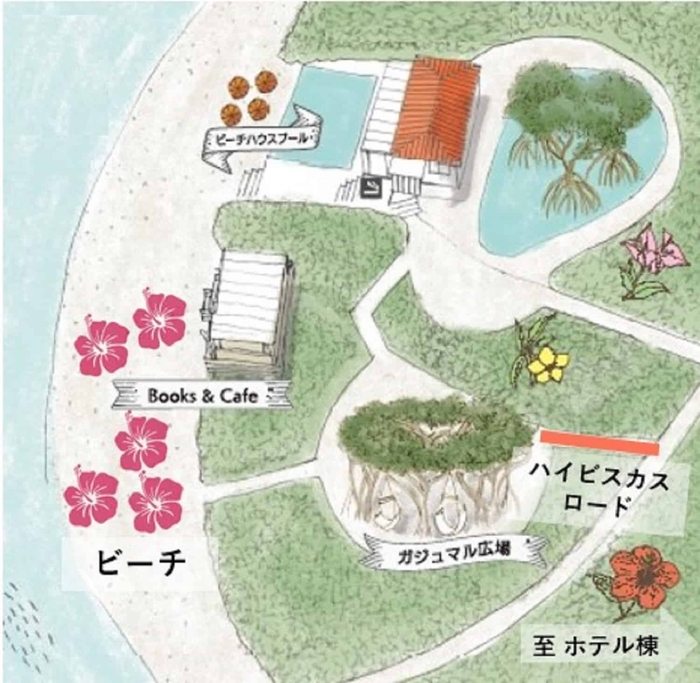 ビーチに続く、全長15メートルの小道には、200輪の真っ赤なハイビスカスが咲いています。自然豊かな離島のビーチから吹く穏やかな風を浴びながら、島のゆったりとした雰囲気を感じることができます。