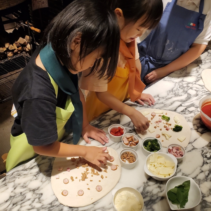 ※体験教室で作成したピッツァはテイクアウトのみとさせていただきます。店内でお召し上がりの場合は別に、お一人様につきドリンク1杯とお料理1品のご注文をお願い致します。