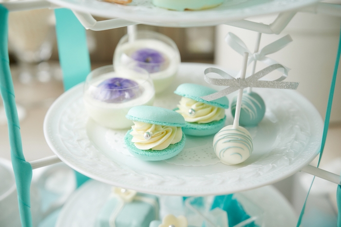 ・特別な日にふさわしい シャンパンのジュレ・バニラとラズベリーのハートムース・エルダーフラワーパンナコッタ・シトロンフレーバーの”サムシング・ブルー”マカロン・チョコとふんわりスポンジのグラデーションロリポップ・ホワイトリボンのパウンドケーキBOX・ダイヤモンドとサファイアをイメージしたミニャルディーズ