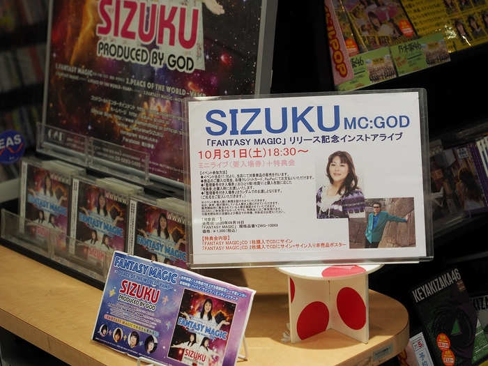 10月31日(土)SIZUKU初のインストアライブが池袋にある新星堂サンシャインシティアルタ店で18時30分から開催されました。MCとコーラスはGODで、SIZUKUとは「GOD CHANNEL」のパートナーとして絶妙のコンビです。今回のイベントへの参加条件は「FANTASY MAGIC」CDの購入。コロナ禍の中でも老若男女問わずたくさんのお客様が足を運んでくれました。お客様だけではなく韓国の新聞「世界日報」記者である佐野氏や同じく韓国の雑誌「KOREA TODAY」記者の金氏などの取材陣も来場しました。