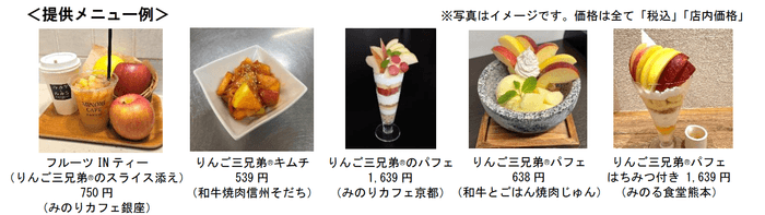 フェアでは、濃い赤色が美しく甘みと酸味のバランスが良い「秋映(あきばえ)」、果汁が多く酸味が少ない甘さが特徴の「シナノスイート」、鮮やかな黄色でパリッとした食感の「シナノゴールド」の3品種を贅沢に使用した限定メニューを提供します。