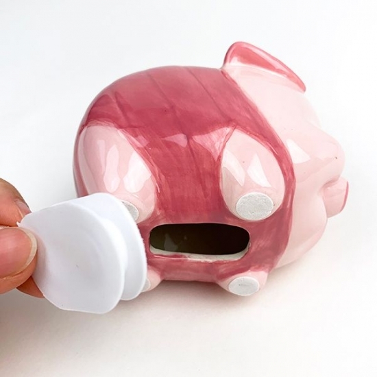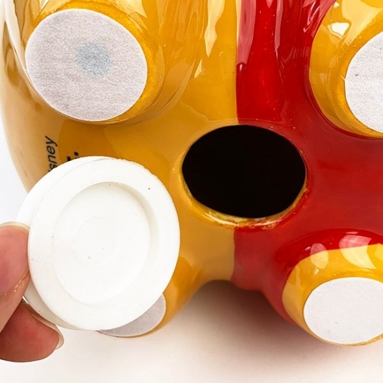お腹の部分にコインを取り出す穴が開いていて、フタもキッチリ閉める事が出来ます。陶器製なので、割らずに取り出せるのは嬉しいですよね。