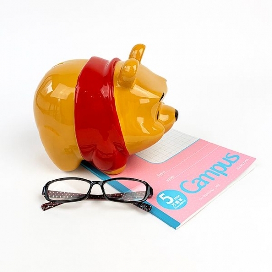 陶器製でぽってりとしたフォルムがかわいい貯金箱は、プレゼントにもオススメの一品♪インテリアとしても活躍してくれるので、プーさんファン必見ですよ。