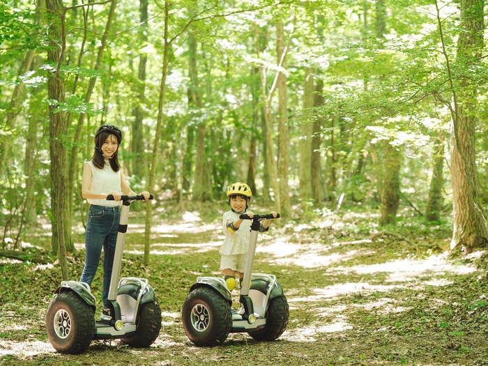 ジャイロライドパークは、セグウェイで有名な電動立ち乗りボード「ジャイロライド」で、オフロードの原生林をインストラクター無しで自由に乗り回せる、全国初の施設です。