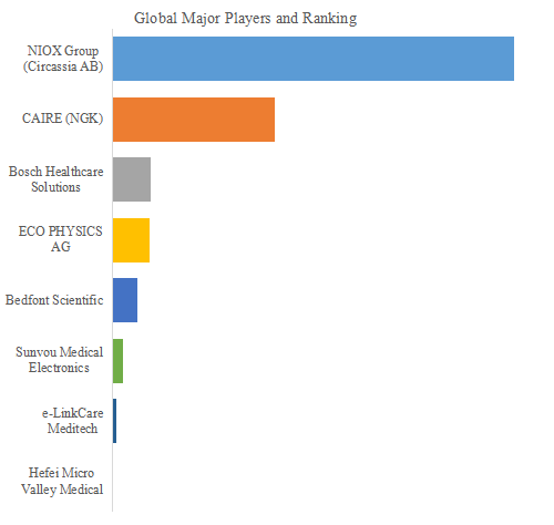 YHResearchのトップ企業研究センターによると、FeNO呼気分析装置の世界的な主要製造業者には、NIOX Group (Circassia AB)、CAIRE (NGK)、Bosch Healthcare Solutionsなどが含まれている。2024年、世界のトップ3企業は売上の観点から約83.0%の市場シェアを持っていた。