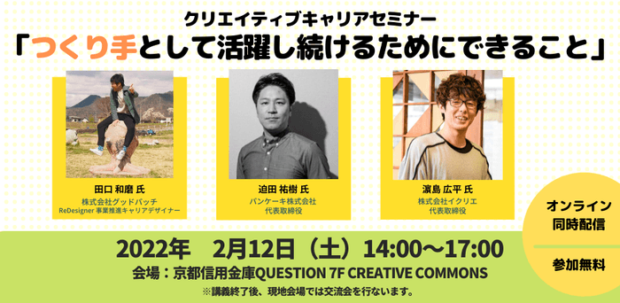 コンテンツ業界を知り、新たな働き方を発見。 京都市主催「クリエイティブキャリアセミナー」を 2月12日(土)にオンライン/オフライン同時開催。