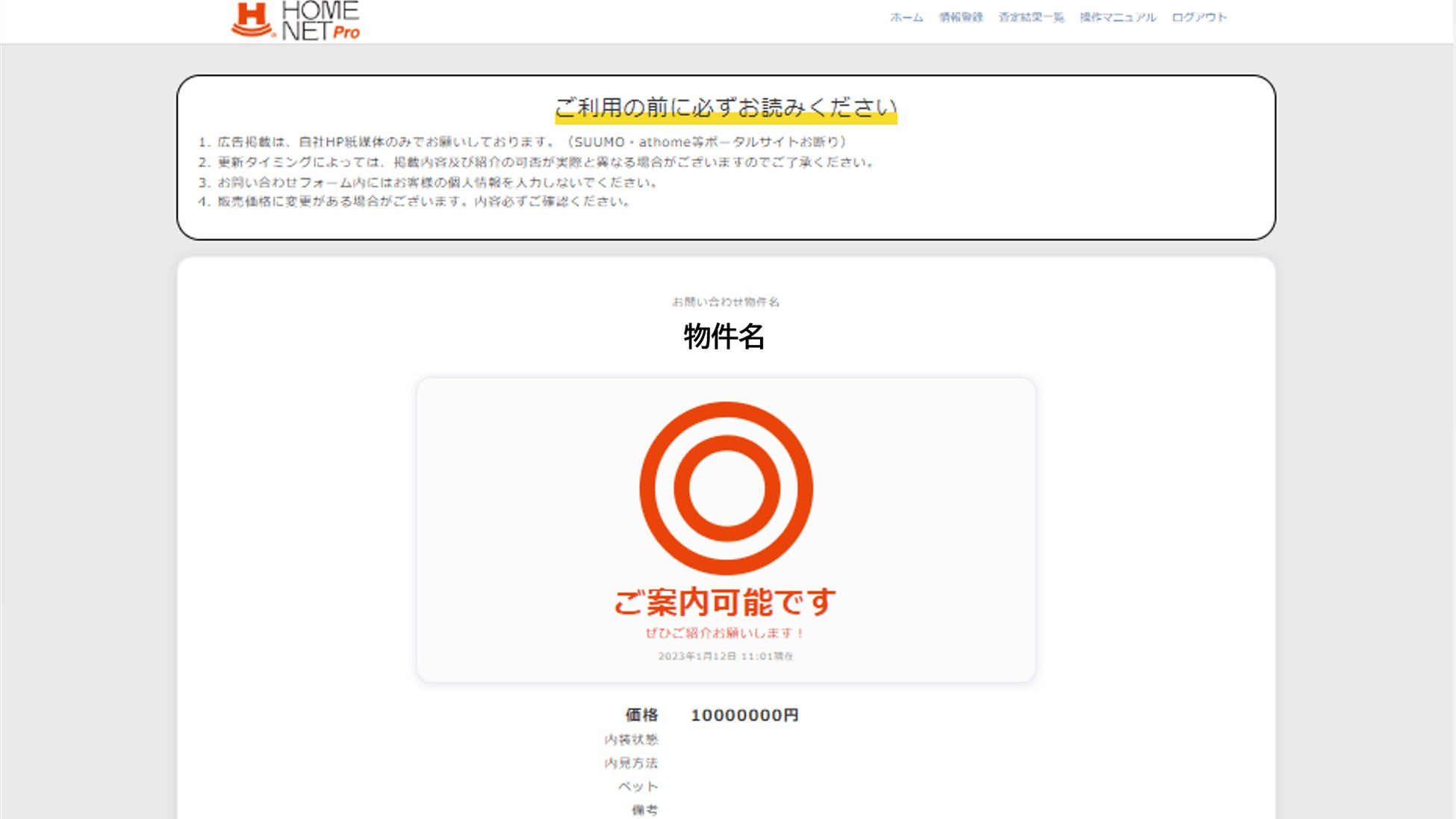 本機能は『HOMENET Pro』有料登録会員ではない不動産仲介会社の方にもご利用いただけます。