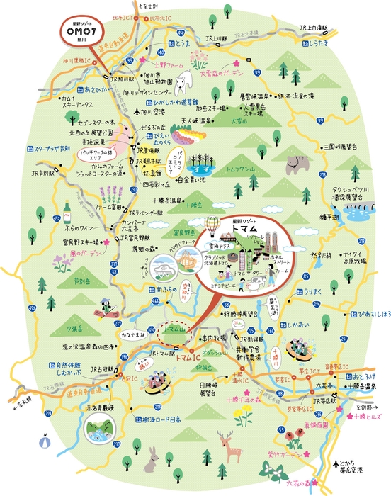 トマム・富良野・旭川エリアマップ