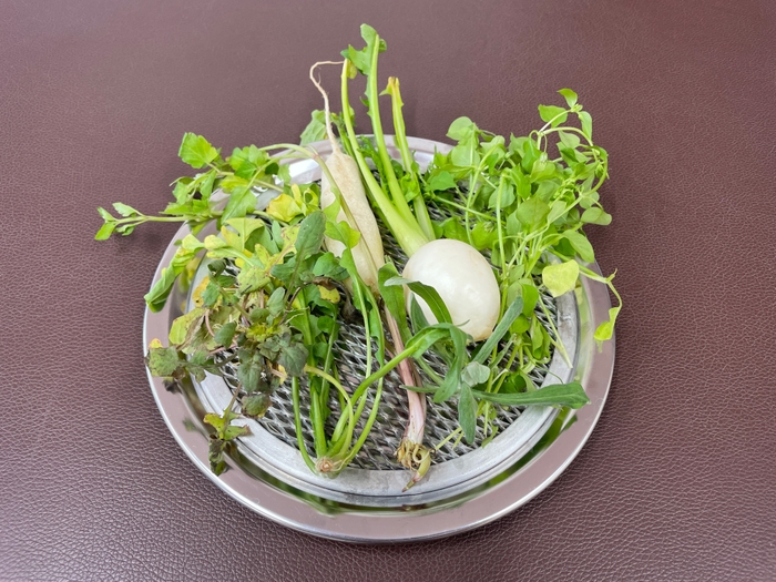 専門店でしか味わえない様に、七草の食感や風味を存分に楽しみながらホロホロした大山鶏の旨みを感じられるそんな一品に仕上げました。