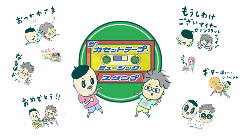 ファン待望(?)の「ザ・カセットテープ・ミュージック」オリジナルLINEスタンプが完成!日常会話でも使いやすいフレーズをはじめ、「奥さん!」「ミファミレド」「クリシェ」「ドシソ」「マイナーセブンフラットファイブ」など番組おなじみのキーワードを盛り込んだクスッと笑えるスタンプまで24デザイン!とってもキュートに描かれたマキタスポーツとスージー鈴木のイラストも要チェックです!