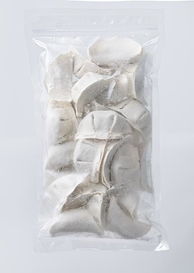 干し椎茸や味噌を使い、野菜たっぷり。米粉入りの皮は、焼くとパリッと仕上がります。