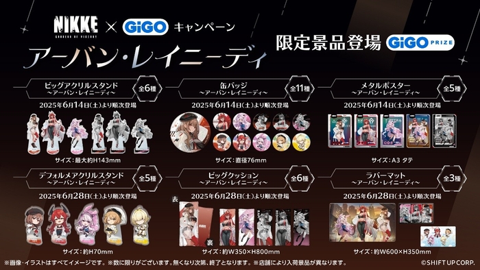 株式会社GENDA GiGO Entertainment(本社:東京都港区 代表取締役社長:二宮 一浩 以下、「当社」)は、2025年6月14日(土)より“戦場に響く銃声と絆地上奪還ガンガールRPG”『勝利の女神:NIKKE』とコラボした、勝利の女神:NIKKE×GiGOキャンペーン ~アーバン・レイニーディ~を開催いたします。