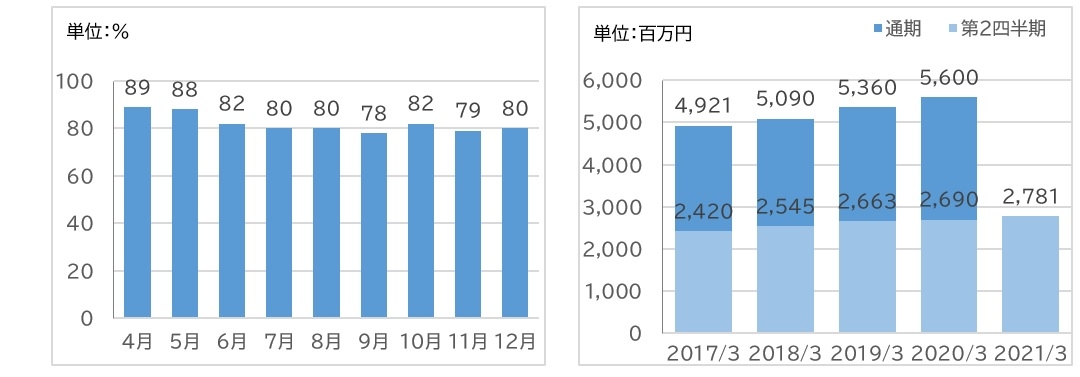 ・テレワーク(在宅勤務)比率の推移: ・売上高の推移: