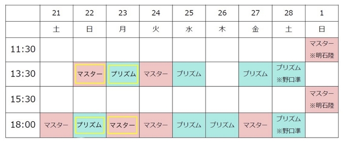 ※2月28日(土)昼夜公演と3月1日(日)昼夜公演は、野口準さんと明石陸さんが入れ替わります。